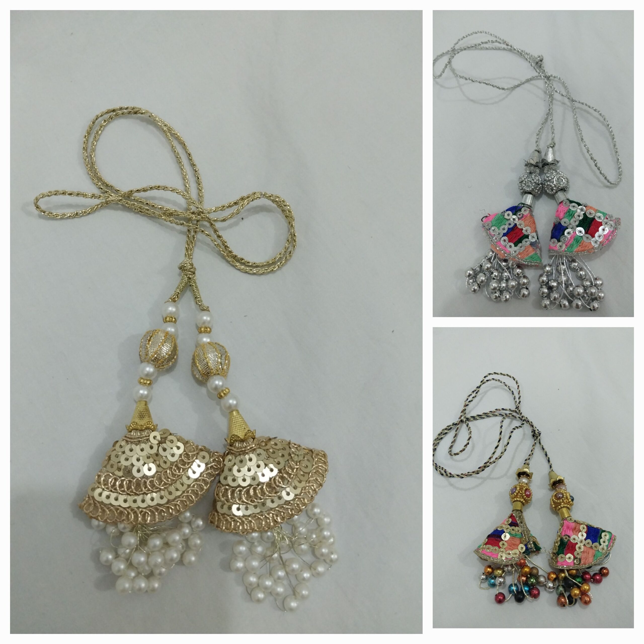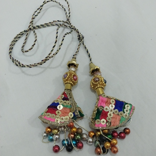 Add a touch of glamour to your outfits with these fancy dori latkan tassels, crafted to enhance the beauty of your ensembles. Available in a variety of stunning designs, these tassels are the perfect embellishments for sarees, lehengas, dupattas, and more.