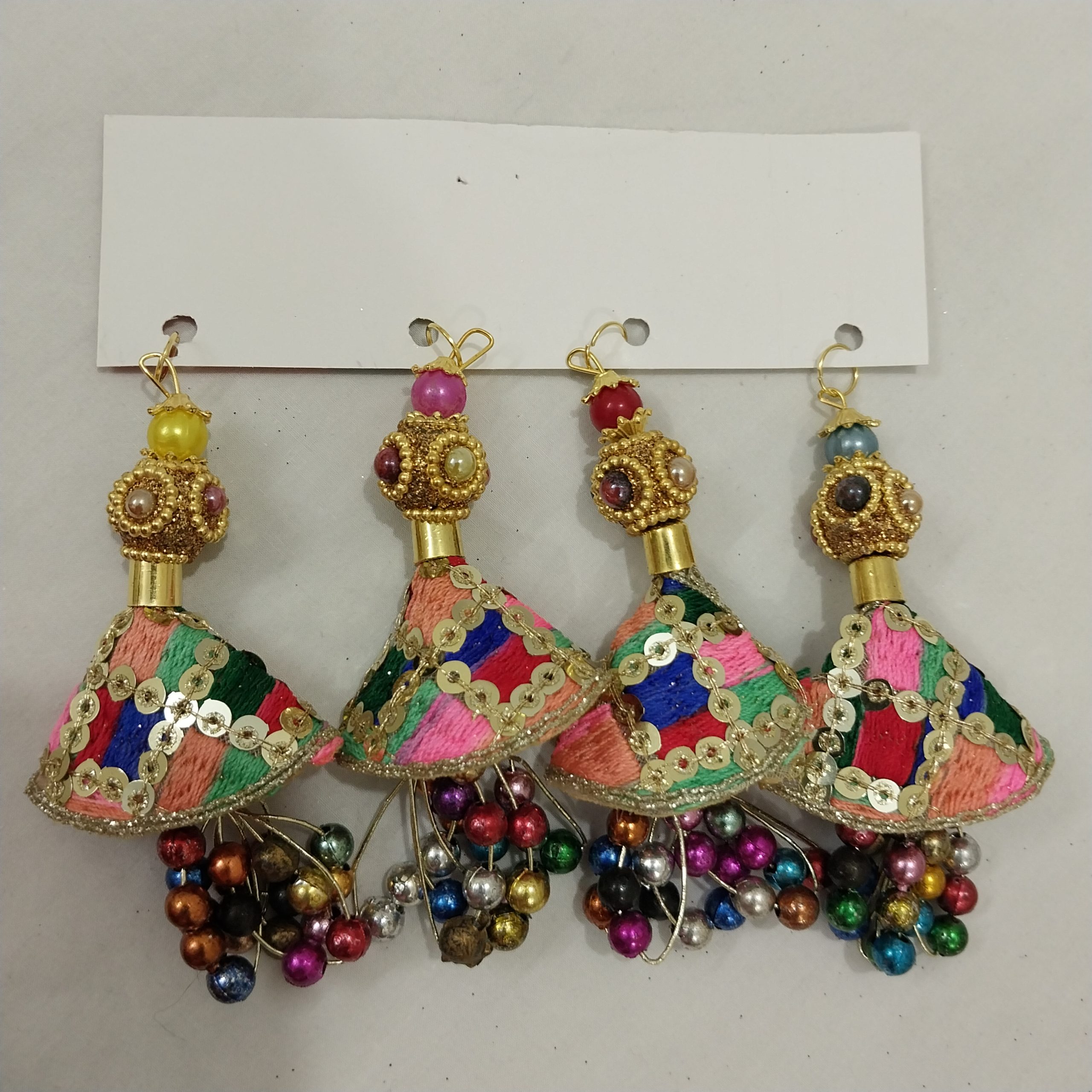 Enhance your outfits with this elegant pack of 4 handmade fancy tassels, perfect for dupatta corners, sarees, or any dress. Crafted with fine detailing and vibrant threads, these tassels add a touch of sophistication and charm, elevating your traditional or modern look.
